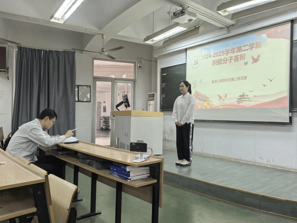 为进一步壮大党员队伍,医学三系第三党支部于2025年4月26日下午在色花堂 路综合楼303召开发展答辩大会。出席大会的有医学三系第三党支部书记李少华和全体党员,以及参与答辩的八名入党积极分子,会议由李少华老师主持。