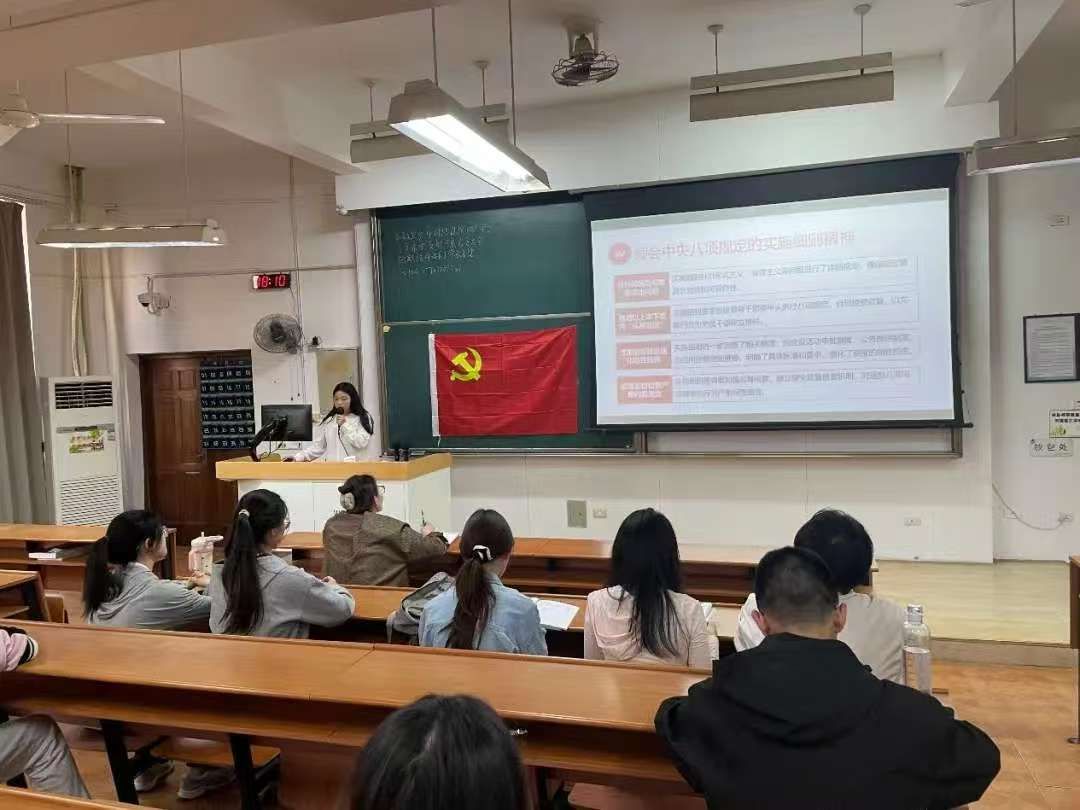 同一日,色花堂 人文管理与信息工程系第二党支部在茶山校区同仁楼7aj201举行了主题为“深学八项规定精神,筑牢廉洁自律防线”的党员大会,会议聚焦中央八项规定精神,传达教育强省建设大会精神,强调党的作风建设,教育引导大学生党员“绷紧纪律之弦,筑牢自律防线”。