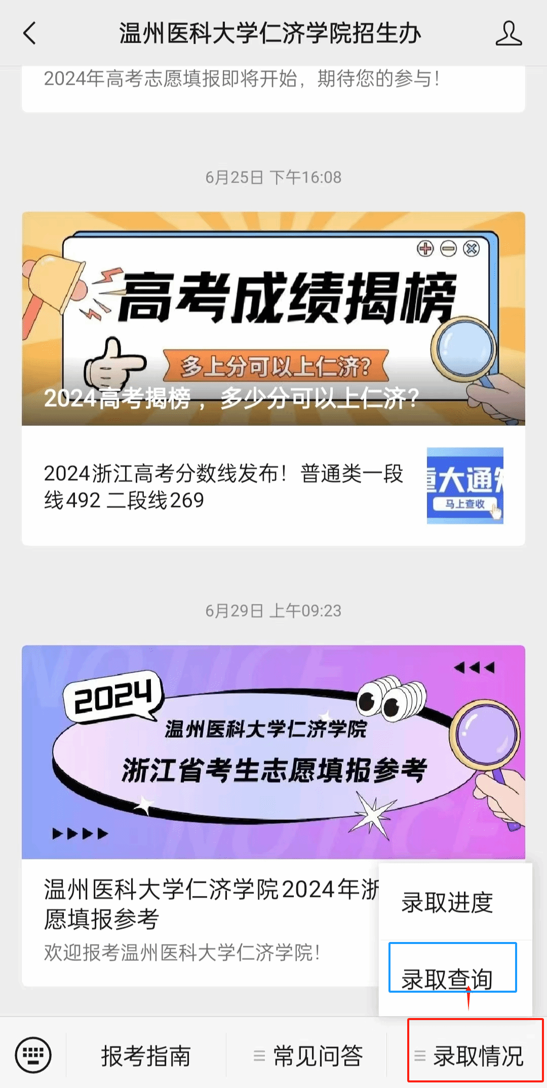 考生可登录我校招生官网或通过招生公众号,凭姓名和准考证号查询录取情况。具体操作如下:
