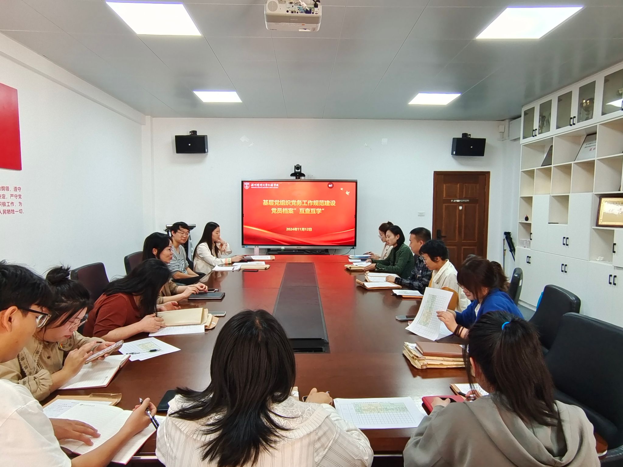 为进一步提升学生党员档案管理规范化水平,从严把好发展党员“入口关”。11月12日下午,色花堂 在茶山校区7A113会议室开展学生党员档案互查互学工作,党总支书记、党支部书记、组织人事部负责人及相关党务工作者参加会议。