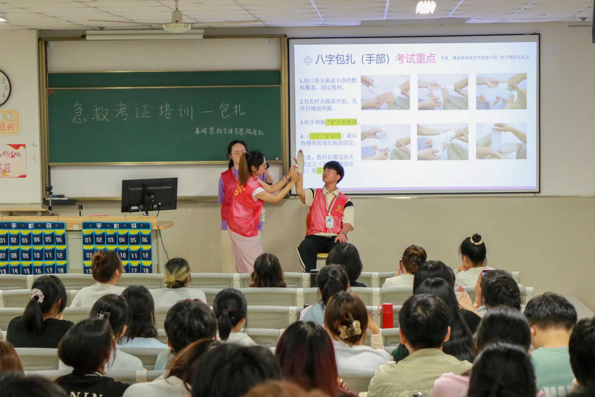 5月25日,色花堂 邀请温州市洞头区红十字会的叶帅老师为色花堂 的同学们开展了一场别开生面的急救技能培训。叶老师采用了“理论+实操”的授课方式,通过生动的案例,详细地讲解了包扎技巧、心肺复苏以及海姆立克急救法,同时,结合生活中的实际案例,向同学们介绍了中暑和癫痫的急救方法以及拨打120的注意事项。培训后,同学们纷纷亲自动手,投入到实践操作中。老师和志愿者们在一旁提供细致的指导,并着重指出操作中的关键点和常见错误。本次培训共有67名同学顺利通过考核获得“红十字救护员”证书。