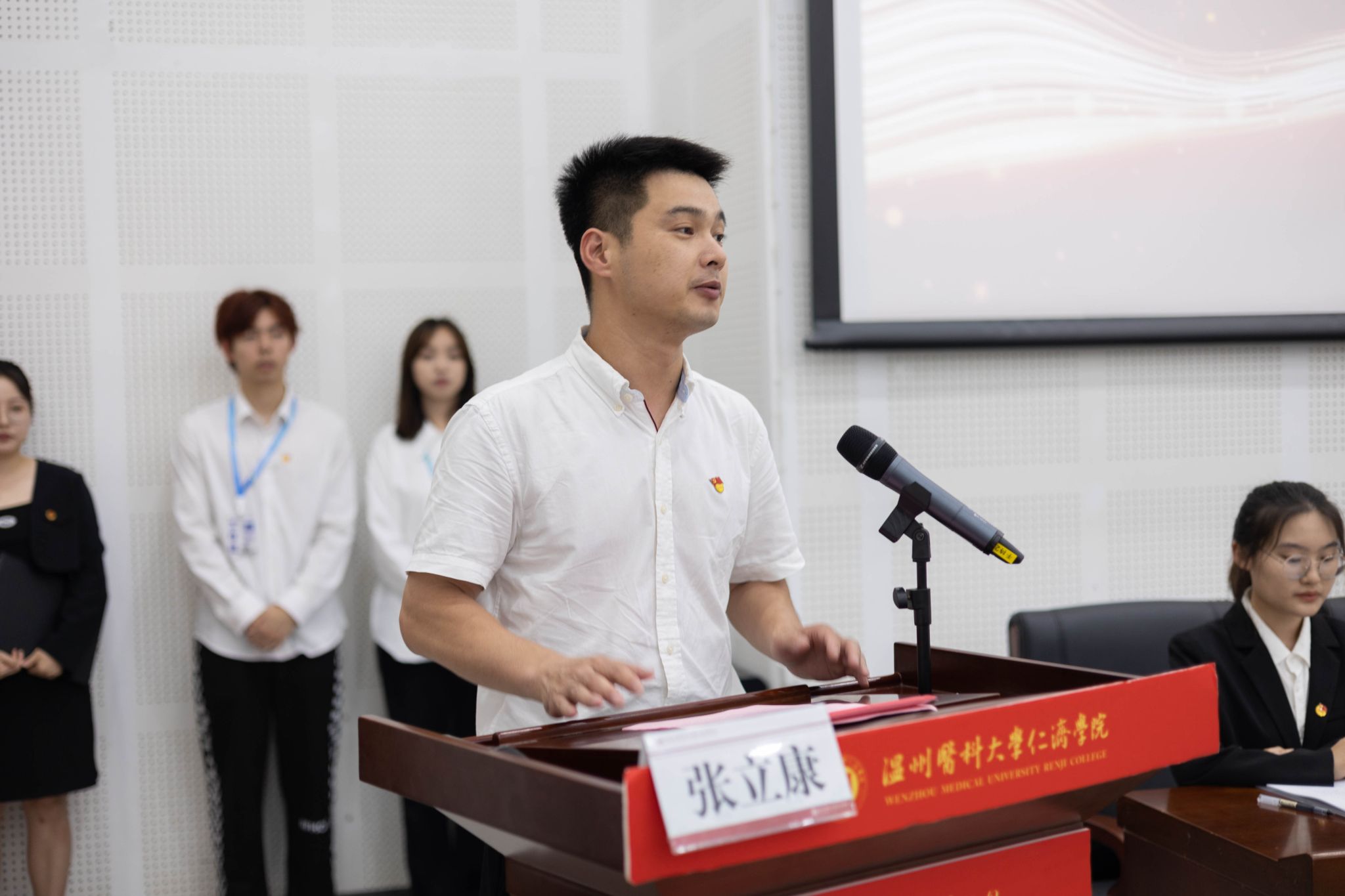 会上,张立康对仁济学子们提出三点希望:一是希望仁济青年应当争做新时代的先锋者、创新者和奠基者。二是希望各级学生组织勇于担当,引导服务广大青年迈向时代新人的行列。三是希望学生干部要锤炼自身能力、发挥榜样作用。随后,院学生会执行主席孙瑜作色花堂 学生委员会工作报告,对过去一年院学生会各项工作进行总结的同时明确各级学生会今后的主要任务。最后,院团委副书记项珍飞在闭幕式上寄语各位学生代表,应当做到矢志不渝,奋勇向前;悉心倾听,积极行动;高效运转,贴近实际;以身作则,严谨务实。