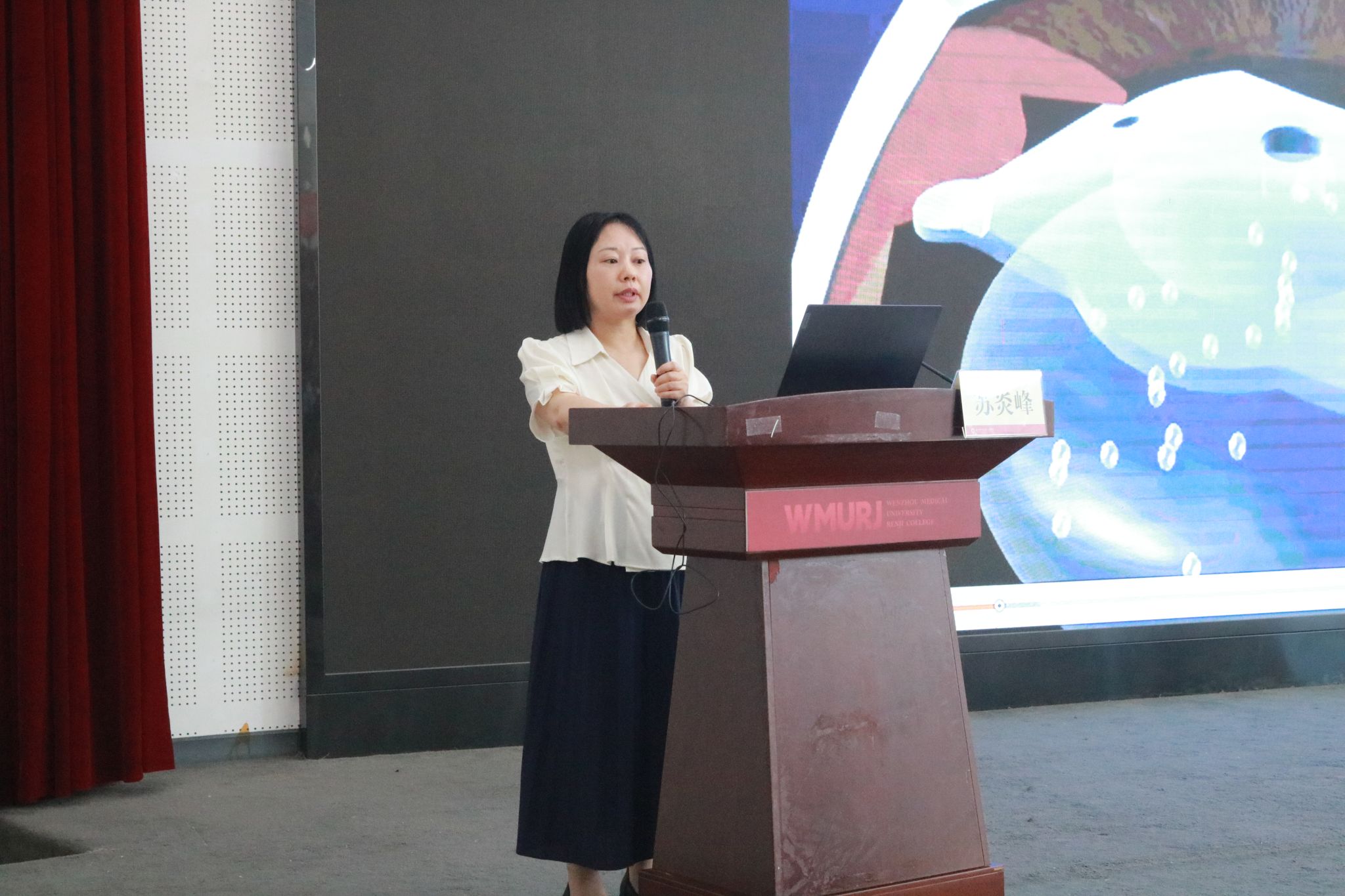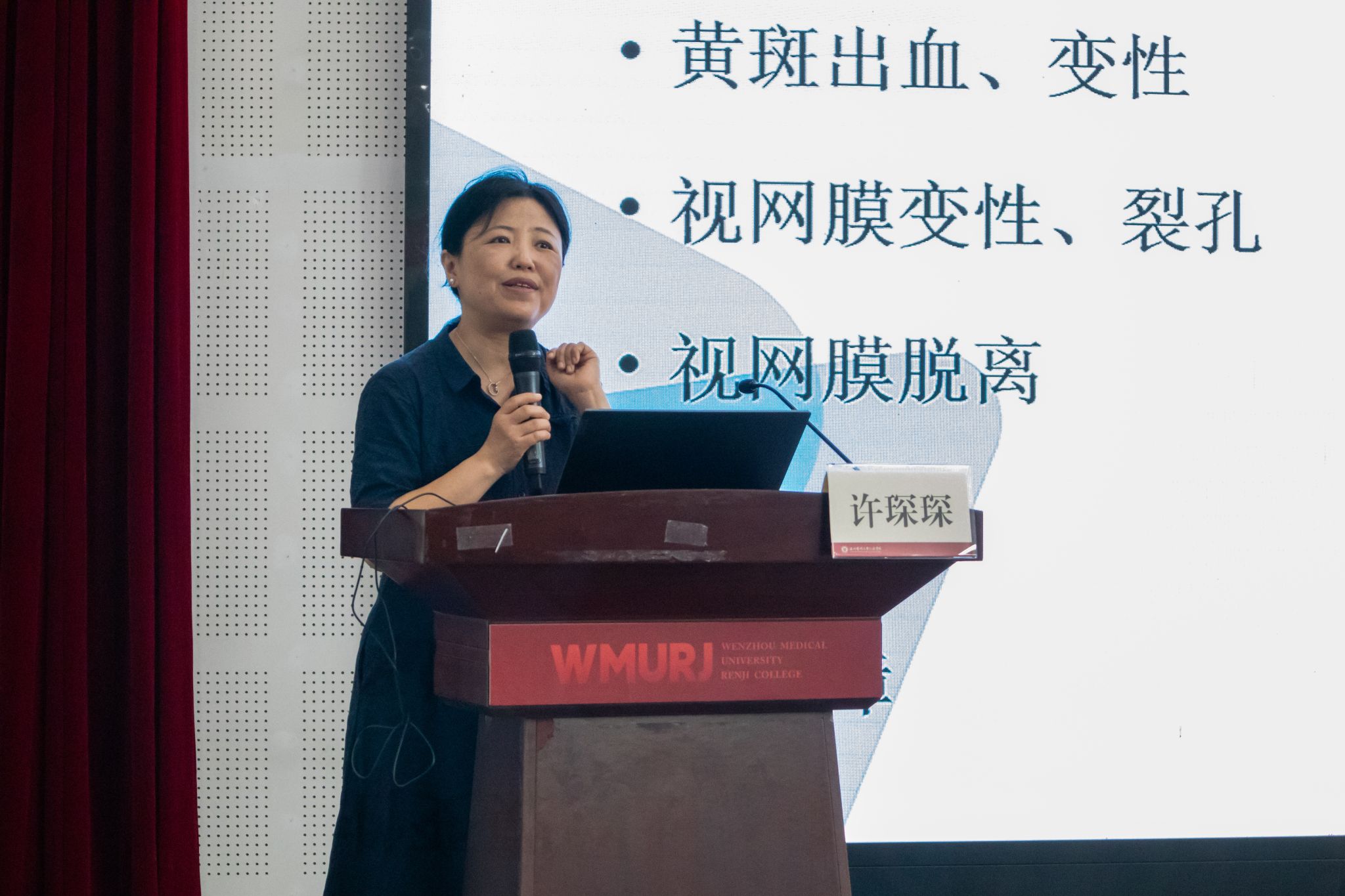 当天下午,眼健康科普讲座——《近视那些事儿》在滨海校区仁心厅开讲。许琛琛与苏炎峰两位主讲老师以其深厚的专业知识和生动有趣的语言,为学生们带来了一场关于眼健康的精彩讲座。他们详细介绍了近视、远视、散光、老花眼等常见眼病的识别和预防方法,让学生们在轻松愉快的氛围中掌握了这些知识。同时,老师们还深入讲解了白内障、青光眼、视网膜疾病等严重眼病的症状、治疗方法以及预防措施,让学生们对眼部健康有了更加全面而深刻的认识。