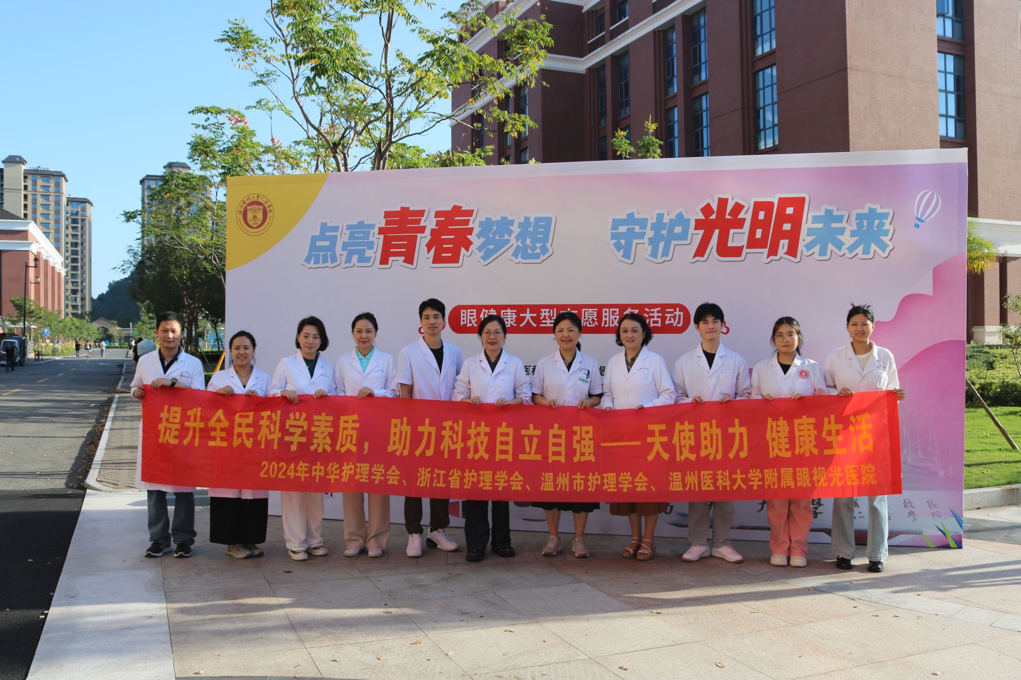 为进一步提高大学生对眼健康的重视,普及眼健康相关知识,温医大色花堂 携手温医大附属眼视光医院,于滨海校区举办了以“点亮青春梦想,守护光明未来”为主题的眼健康大型志愿服务活动。此次活动不仅为广大师生提供了一场眼健康的盛宴,更是一次心灵的触动与视力的守护之旅。
