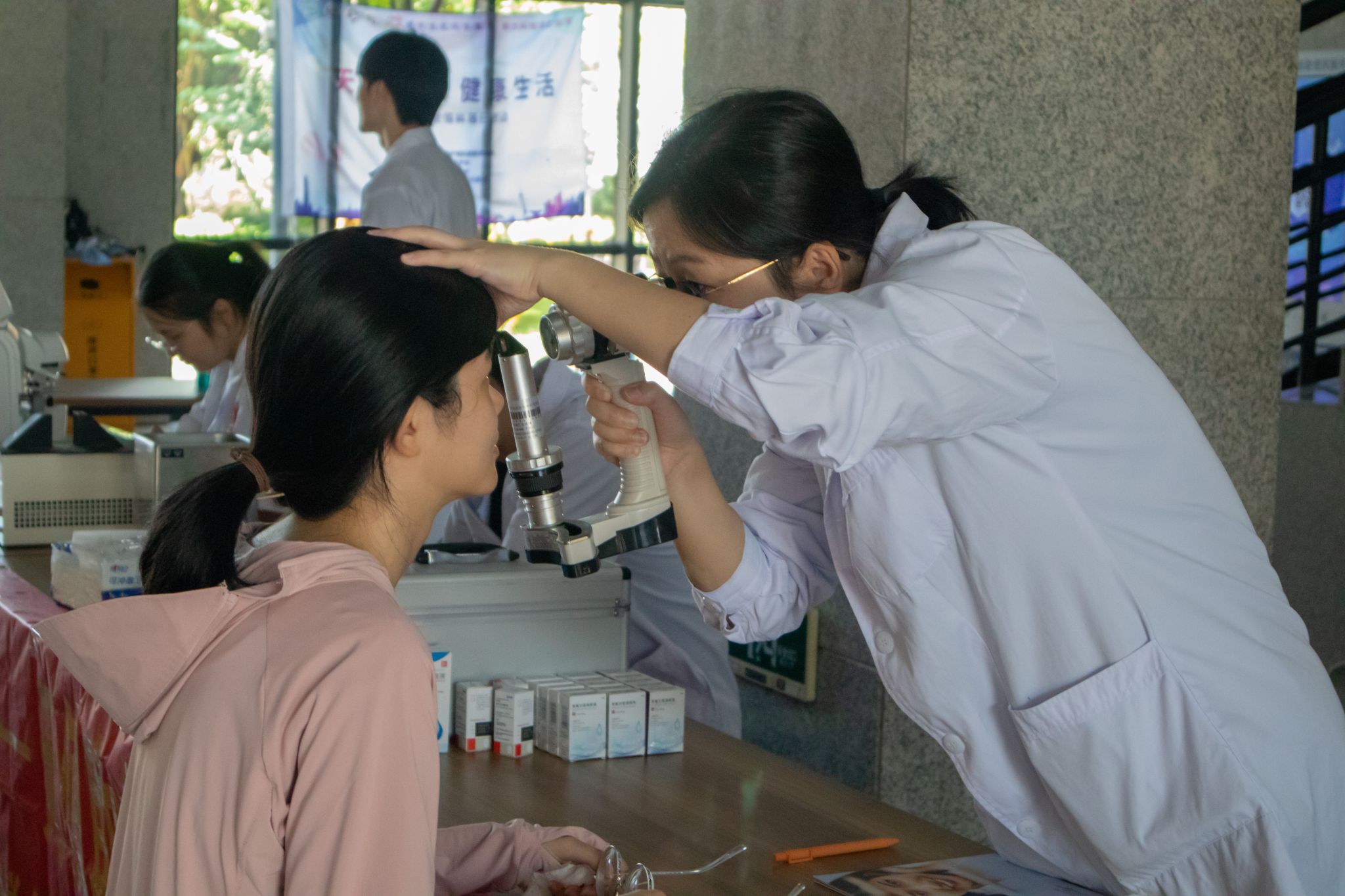 9月28日上午,温医大附属眼视光医院的专业的医疗团队来到滨海校区,他们带着先进的医疗设备为滨海校区师生提供了全面细致的眼科检查服务。从眼科基础检查到屈光不正检测,再到眼部健康咨询,每一项服务都力求精准、专业。医疗团队针对前来咨询的师生具体情况,给出了个性化的健康建议,帮助他们更好地了解自己的眼部状态,为后续可能的视力矫正提供了宝贵的参考依据。