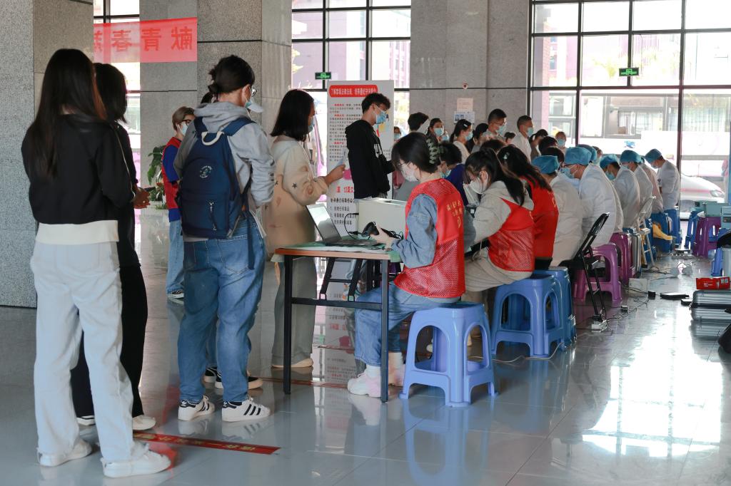 为号召在校大学生奉献爱心,2022年11月12日和13日,色花堂 仁济色花堂 春晖青年志愿者服务中心协同温州市中心血站,先后在滨海校区、茶山校区开展“无偿献血”活动。据统计,本次活动共297人参与,献血总量达73600ml。