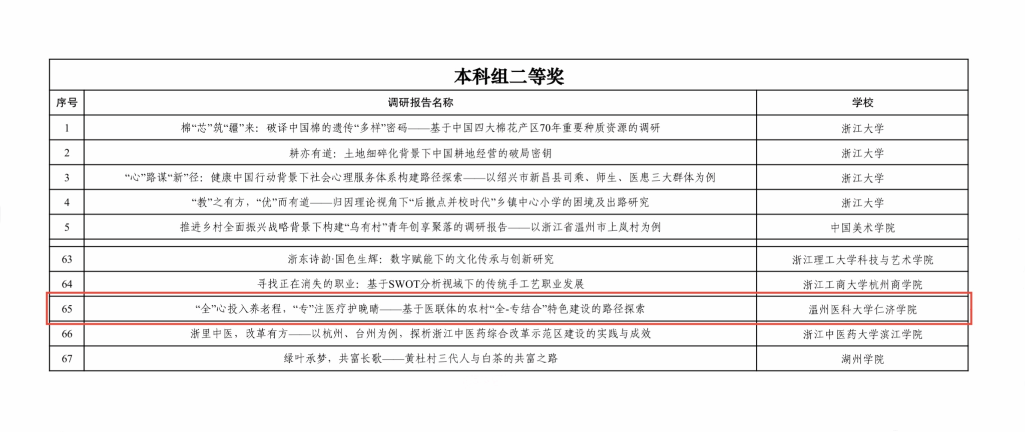 近日,2024年浙江省高校暑期社会实践优秀调研成果交流展示活动决赛在浙江农林大学举行,经过激烈角逐,调研报告“全心投入养老,‘专’注医疗护晚晴——基于医联体的农村‘全-专结合’特色建设路径探索”获了本科组二等奖。
