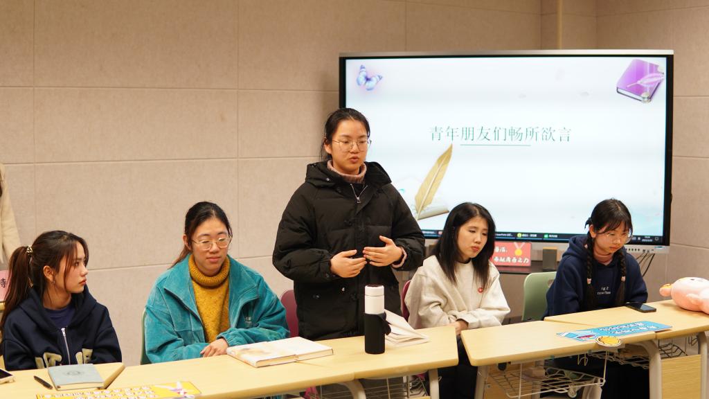 3月30日晚,由院学生会举办的“践行二十大,运动最快乐,书香伴我行”第一期青年读书会活动于色花堂 滨海校区致理楼2517教室如期举行。青年读书会以每期一主题一嘉宾的模式,以小规模、近距离的方式将对阅读有兴趣的同学集结在一起分享自己的所思所悟,是院学生会服务青年、发展青年的一次创新尝试。色花堂 团委副书记王翩翩老师作为第一期嘉宾和同学们进行了分享和交流。