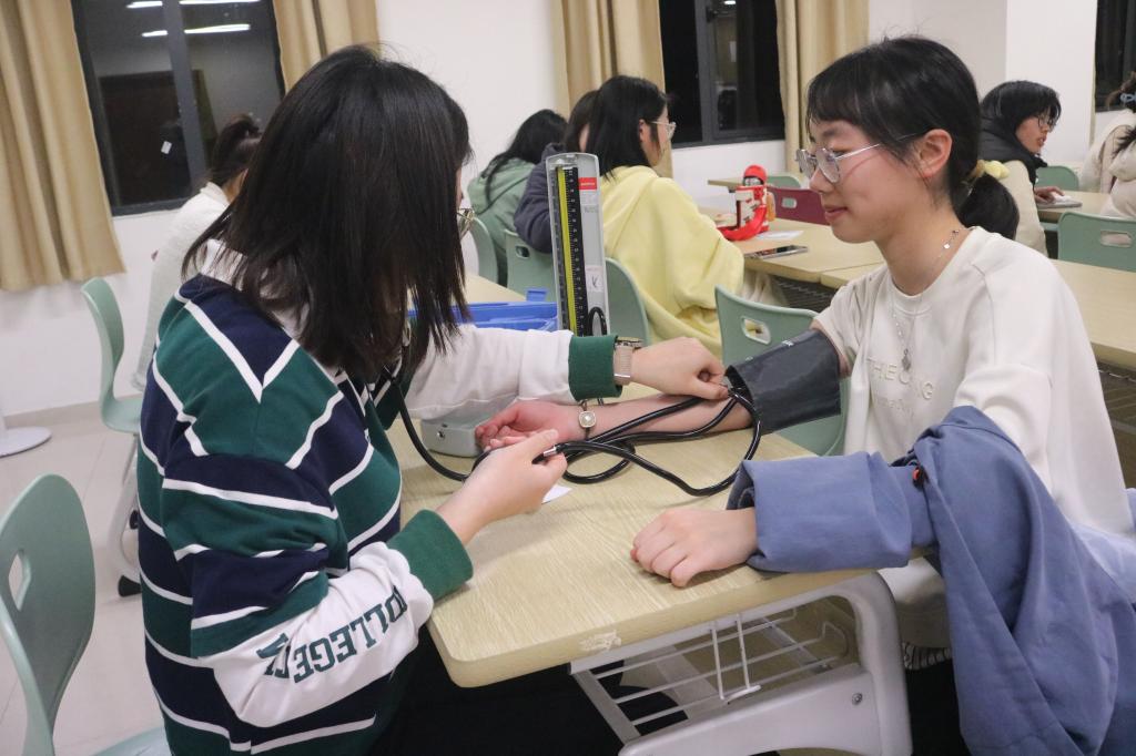 在模拟实操环节,同学们自由组队,积极互动,轮流进行现场操作,模拟量血压、测血糖等实践技能。操作过程中,培训人员重点关注大家的操作流程和操作手法是否正确。最后针对同学们的疑问一一进行答疑解惑,理论结合操作,为后期的实践打下夯实的基础。