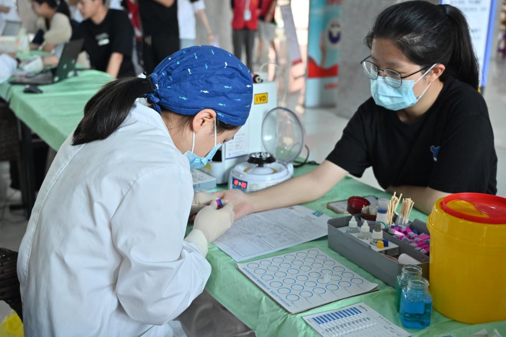 6月3日,献血活动正式在滨海校区展开。本次活动设立了报名点、体检点、献血点以及奖品领取点,为让本次活动顺利的开展,志愿者们提前到达现场,进行场地的布置。活动现场,前来献血的同学们提前做好准备,有序排起了长队,在志愿者的引导下认真地填写献血登记表格,积极配合医护人员进行初筛检查、测量血压、采集血样等检查工作,确保血液安全。其中在检查处,同学最关心的问题是自己目前的情况能否献血,医护人员耐心的解释道:合理献血有益身体健康,本次活动的采血人员全是专业医生,所用器具全是一次性的卫生用品,同学们无需有什么顾忌。检查结束后,符合献血条件的人依次进入献血巴士,耐心倾听医护人员讲解注意事项。献血完成后,志愿者都会及时为献血者送上一杯暖暖的红糖水以防身体不适,并组织参与者在纪念品发放区登记信息、领取小礼物。随后即可在献血小知识答题专区进行相应的献血知识答题,完成答题小任务后就能够获得精美礼品。