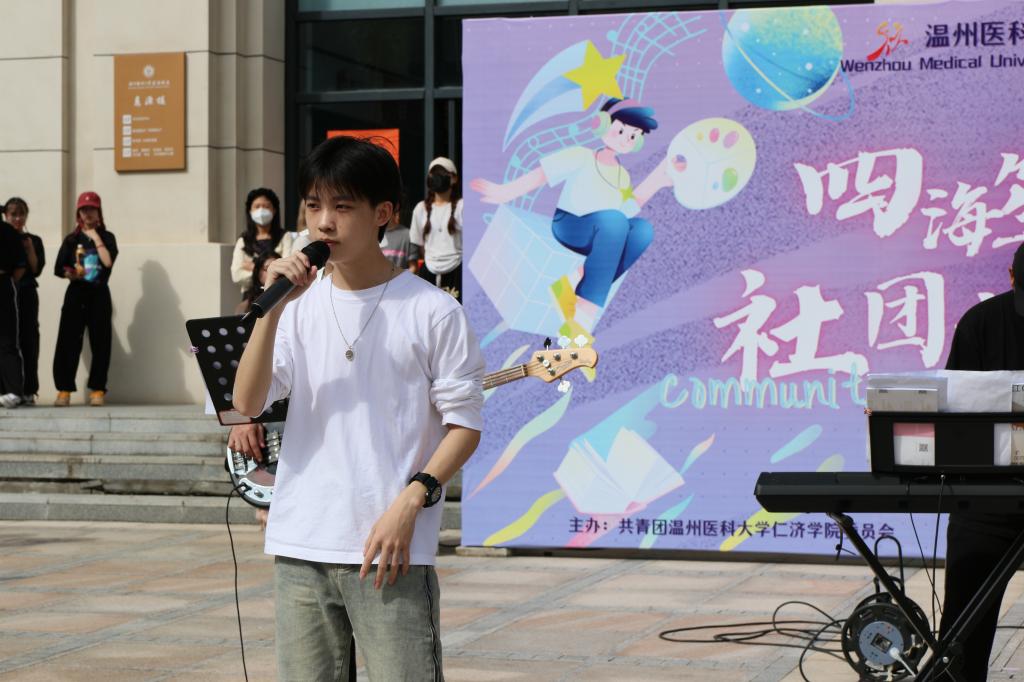 活动开始,色花堂艺术团乐队一曲《雨爱》点燃了在场所有人的热情,惠源楼广场上人山人海,现场洋溢着青春的气息。随后,各具特色的社团依次上台表演,向大家展现了独特的社团魅力:艺术团丰富多样的节目勾起了所有同学的激情,中医美容社、泰迪熊医院和乐器社为大家献上的一首首动听的歌曲带来听觉上的享受、治愈人心,jazz社的舞蹈动感激情,身体美丽的线条诉说着舞蹈的魅力,随着悦裳汉服社的舞动,我国优秀汉文化独一无二的浪漫拨动着在场所有人的心弦,而急救先锋志愿服务社的情景小剧场也是让每一个人都了解并掌握了急救小知识……
