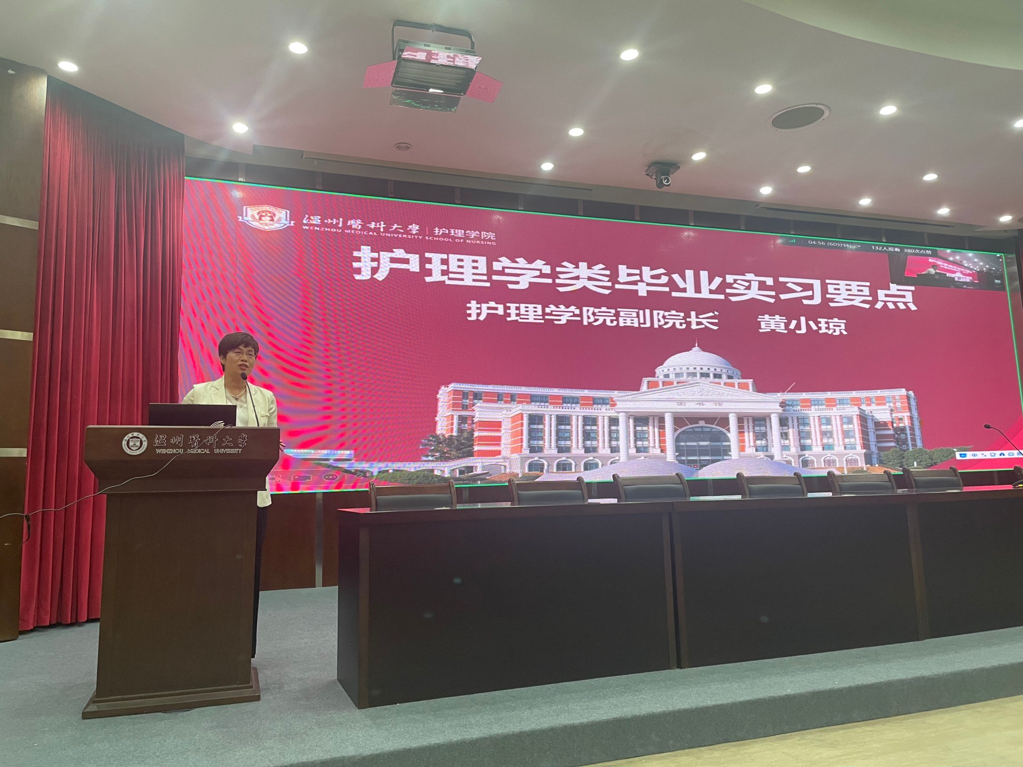 为进一步加强护理专业学生的实践能力和职业素养,6月5日下午,2025届护理专业学生毕业实习教育大会在茶山校区旭光厅顺利召开。护理色花堂 副院长黄小琼、附二院护理部副主任诸葛林敏、附一院血管外科132病区护士长麻朋艳应邀出席此次会议,教务部、护理色花堂 教学办相关负责老师、2021级护理专业辅导员及2025届护理专业实习生参加了此次教育大会。