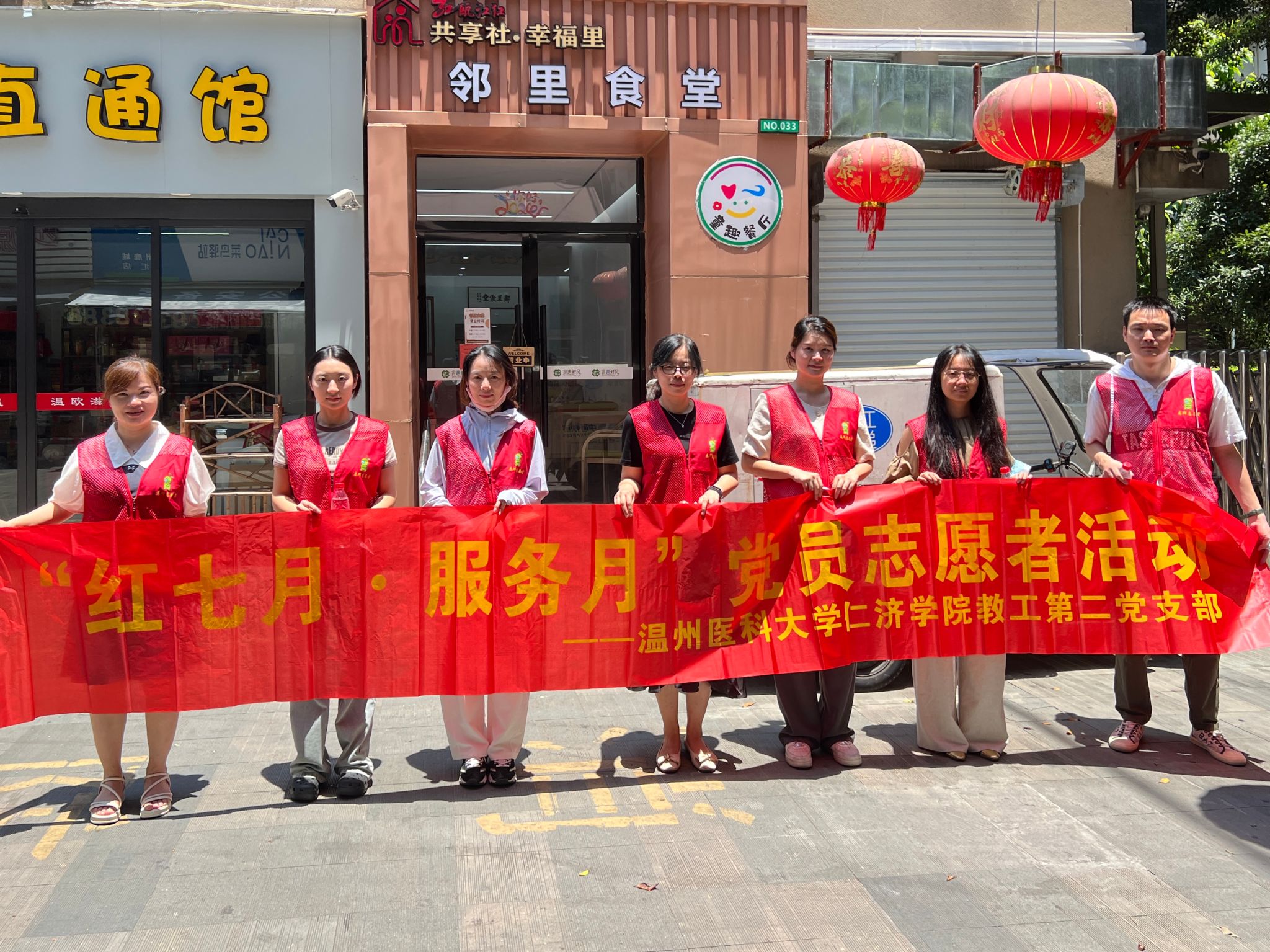 7月8日,色花堂 仁济教工第二党支部赴南郊街道邻里食堂开展志愿活动。
