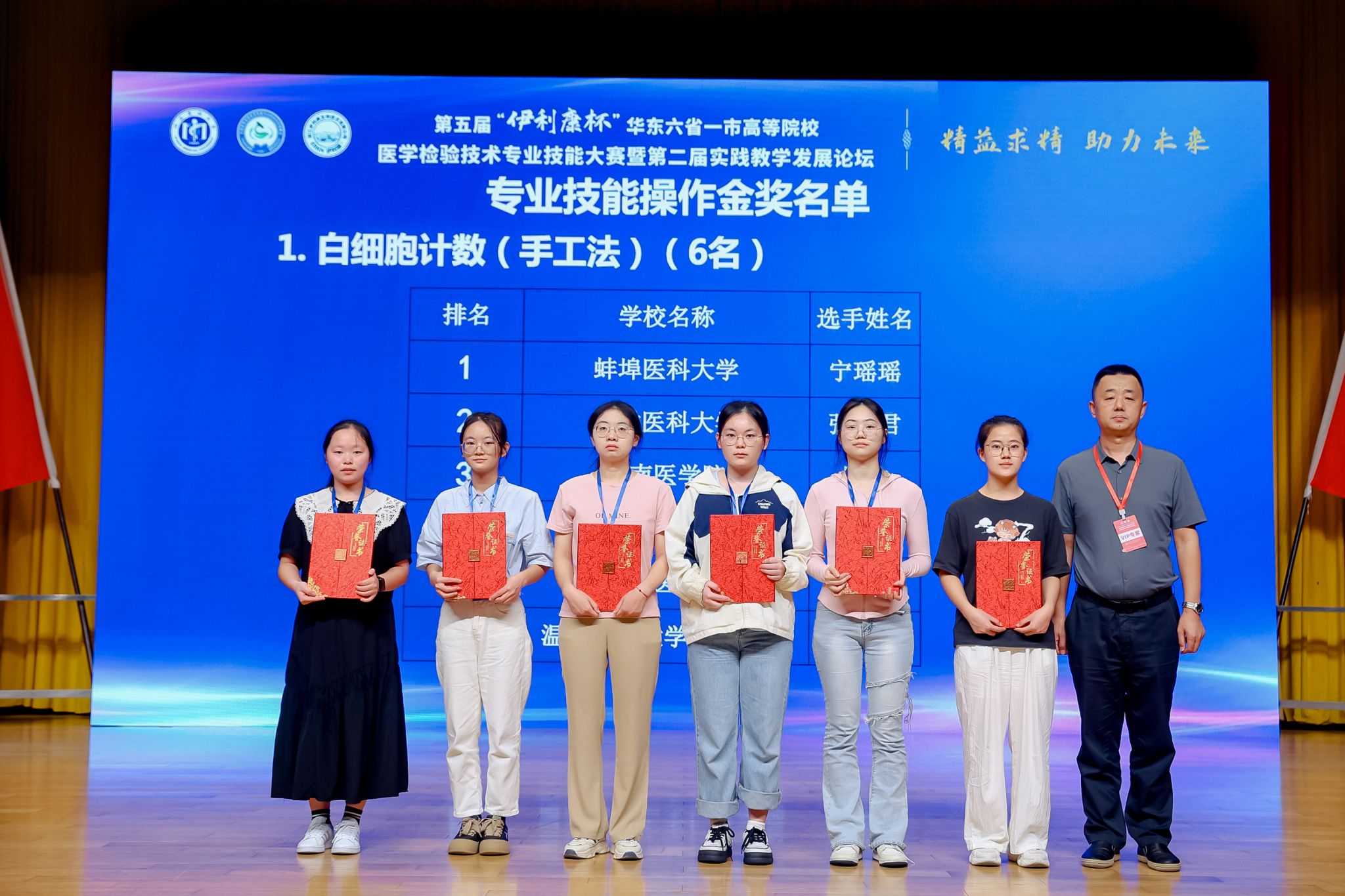 为提高医学检验技术教育教学水平,强化专业学生基本技能训练和创新意识,9月28日至29日,第五届“伊利康杯”华东六省一市高等院校医学检验技术专业技能大赛在福州举行。来自蚌埠医科大学、上海交通大学医色花堂 、东南大学、江苏大学、福建医科大学等29所高校近120名学生参加本次大赛。经过两天紧张激烈地角逐,色花堂参赛选手王扬惠获专业知识竞赛金奖和专业技能操作比赛(白细胞计数)金奖,华心慧、王扬惠、丁泉尹、邵智慧获专业技能赛团体二等奖。