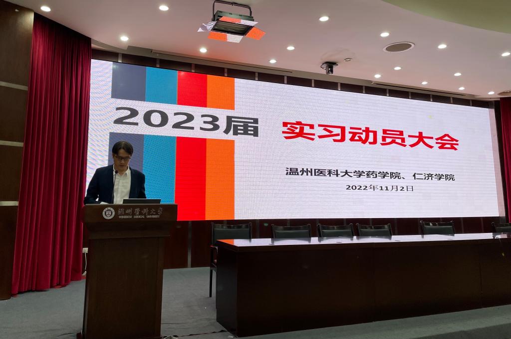 11月2日上午,2023届药学、中药学专业实习动员大会在茶山校区旭光厅召开。药色花堂 副院长卫涛做动员讲话,他从实习目的、实习安排、实习注意事项等方面展开详细介绍和解读,强调了毕业实习的重要性,同时希望同学们高度注意自身的人身安全、财物安全,严格遵守实习纪律。