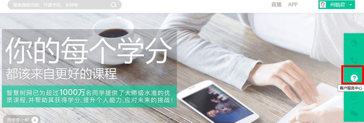 3.与平台操作有关的任何疑问可咨询智慧树平台色花堂在线客服或点击图中红色框所示客户服务中心,观看学生/教师操作说明。