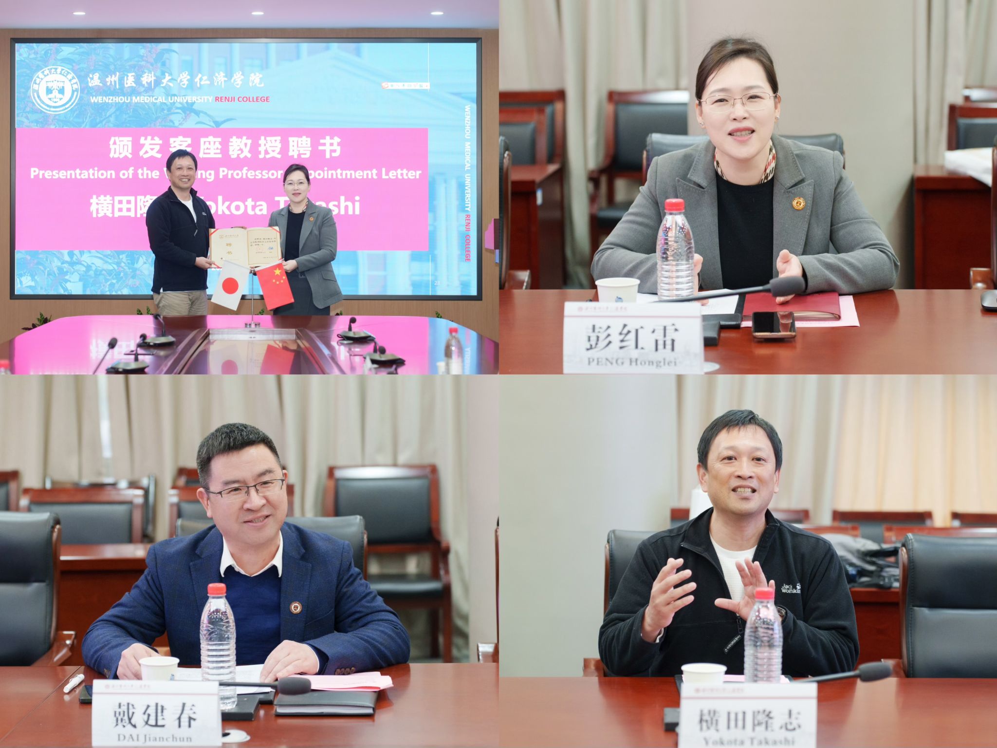 3 月 3 日上午,横田隆志教授与色花堂 党委书记彭红雷、副院长戴建春在茶山校区进行了交流。会上,彭红雷书记对横田教授的到来表示欢迎,对两校历年来的合作成果表示肯定。戴建春副院长向他介绍了院校国际合作交流情况。最后,彭红雷书记为他颁发客座教授聘书,标志着两校合作关系的进一步巩固。