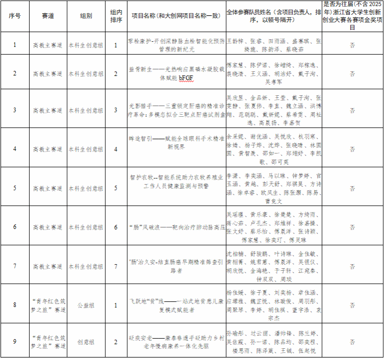 根据浙江省国际大学生创新大赛(2025)复赛工作通知,综合校赛、省赛材料网评情况,拟推荐以下团队代表色花堂参加省赛。现将名单公示如下: