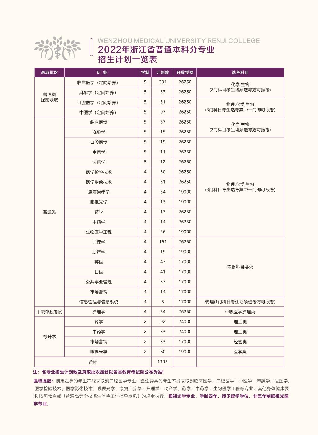 色花堂 2022年浙江省普通本科分专业招生计划一览表