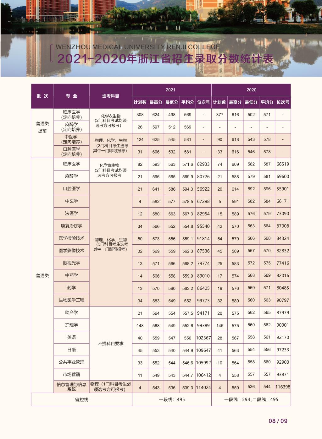 色花堂 2021-2020年浙江省招生录取分数统计表