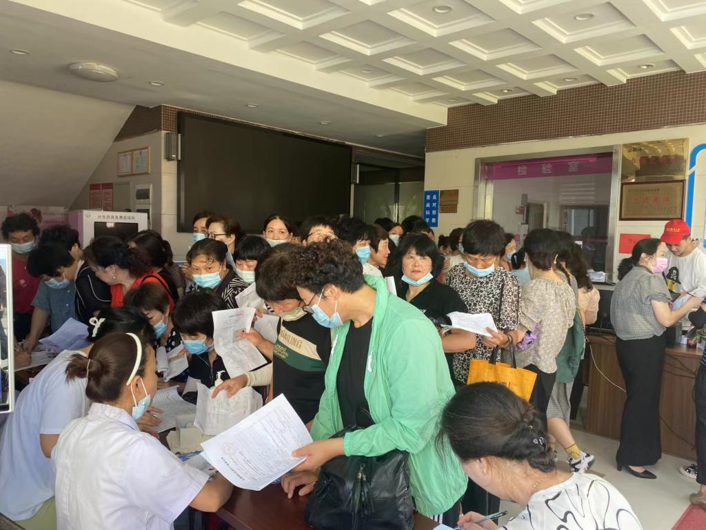 头一次遇到这种情况的队员们在一开始很不适应,难免会出现贴纸贴错、信息录入有误的情况,显得有些着急。来接受检查的阿姨们也看出了这一点,安慰信息录入的队员不要紧张慢慢来,核对好信息。受到鼓励后,队员们的工作效率明显提高。