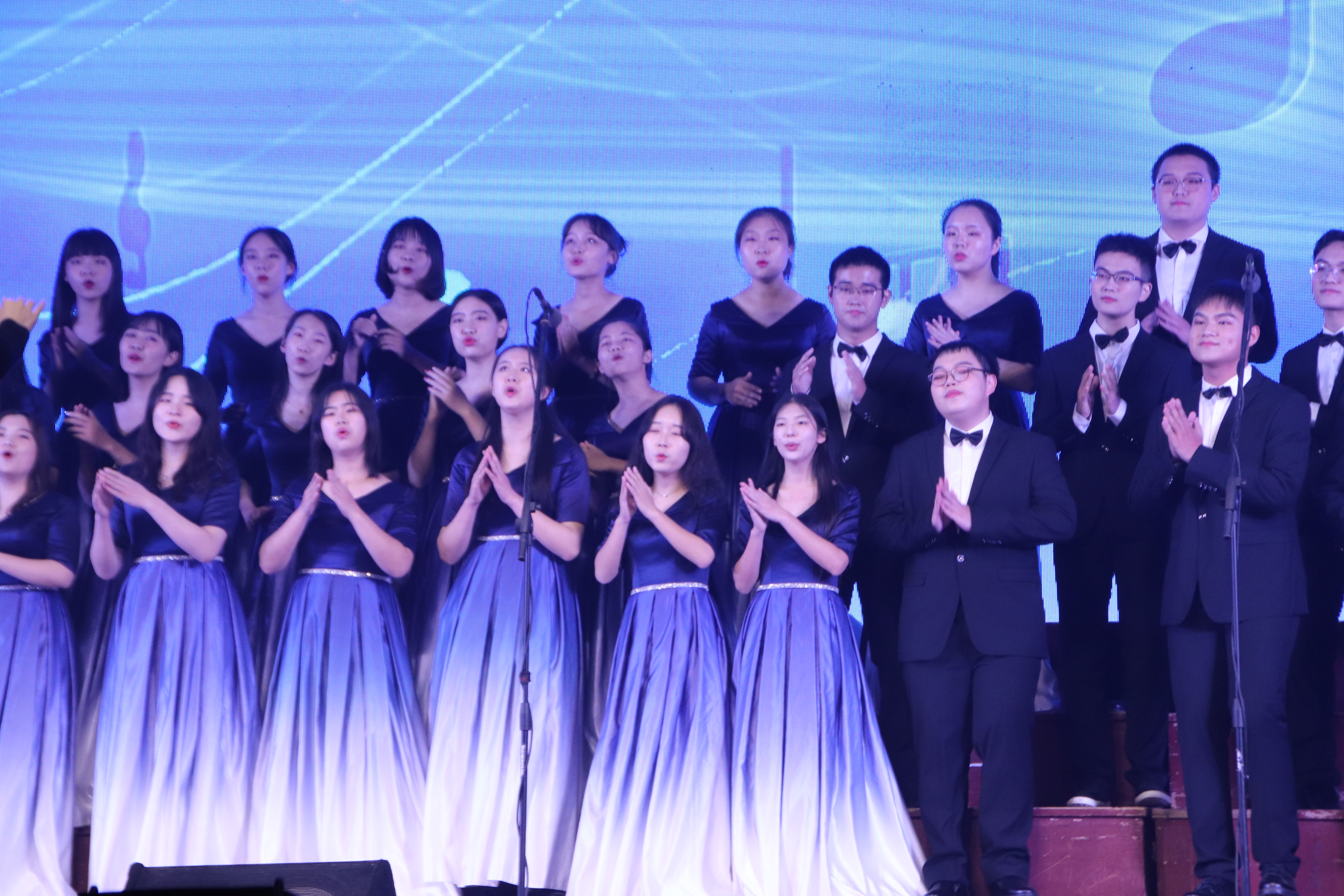 我院作为第三个上场表演的院系,由学院ATP合唱团(学生)带来演唱歌曲《新的天地》和《唱响新声》,用歌声献礼党的百年华诞。两首歌曲用不同的风格,传达着相同的积极向上、奋进前行的精神风貌。