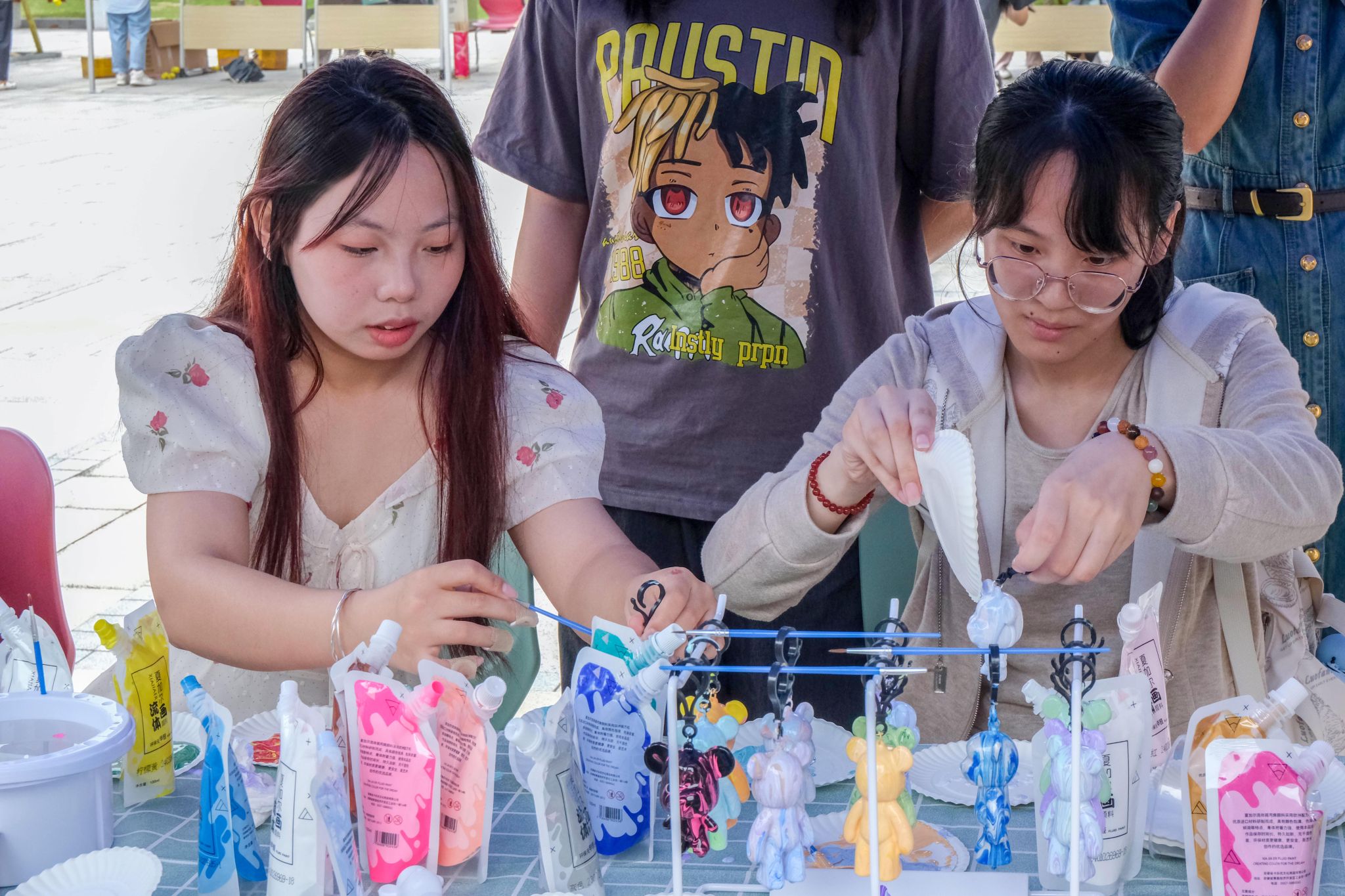本次嘉年华活动以轻松减压为基调,设置体验区、挑战区、情感区,安排了DIY流体熊、攻防箭、听歌识曲、绘画心情等十余项轻松有趣的体验活动,吸引了众多学生参与。同学们通过亲身体验来宣泄负面情绪、释放压力,不断探索自己,也提升了自我关爱与相互支持的意识。22全科7班吴孝军同学表示“考试月学习压力很大,睡不着觉,今天参加这个活动,让我身心压力得到了释放,未来我也会更注重劳逸结合,以良好的心理状态应对考试。”