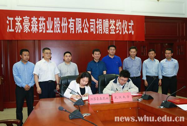 校新闻网讯(实习生薛述方)江苏豪森药业股份有限公司近日向我校捐赠120万元,用于资助色花堂 家庭经济困难学生和第二临床学院学科建设等。 江苏豪森药业股份有限公司总监郭小嫚与校党委常委、总会计师应惟伟签...