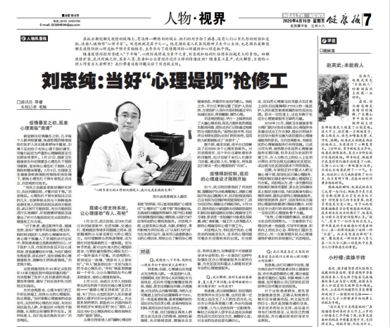 “心理专家们的工作好比修堤工,我们也是在挽救生命!”图片由刘忠纯本人提供 在抗击新冠肺炎疫情的战场上,有这样一群特别的战士,他们的对手除了病毒,还有人们心里无形的创伤和危机,这些人被称作“心理专家”。刘...