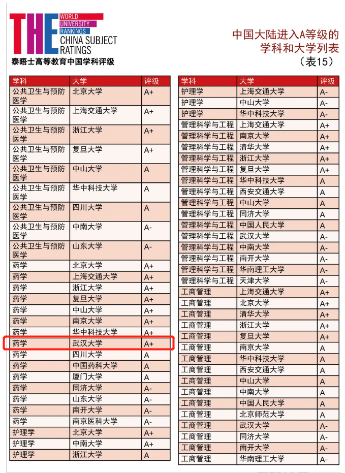 5月11日,泰晤士高等教育(THE)发布了第二届中国学科评级。此次评级涵盖90所中国大陆高校,以及全球1420所院校。评分采用中国教育部的学科分类法,涵盖89个科目,采用 A+ 至 C– 评分系统。 一流大学建设高校中,武汉...
